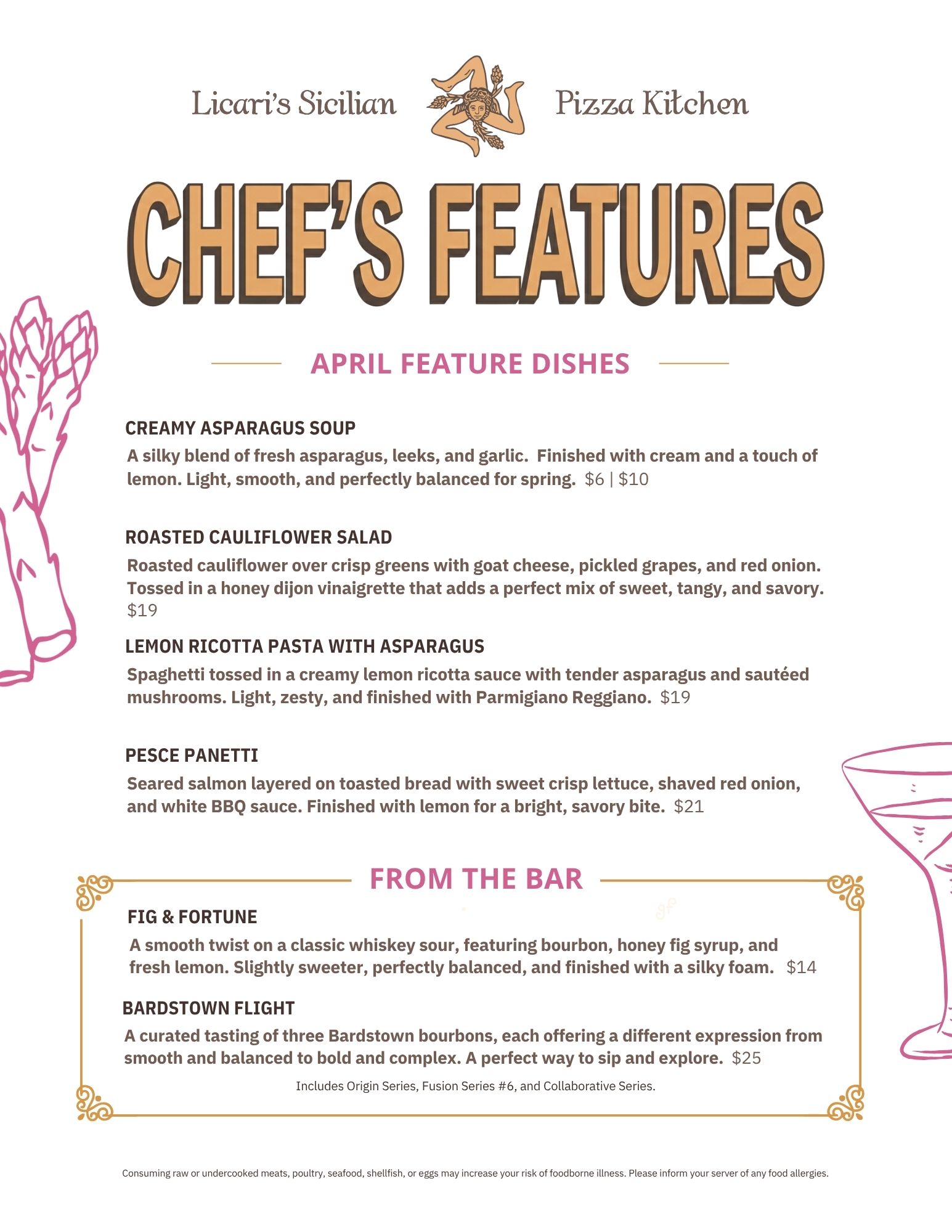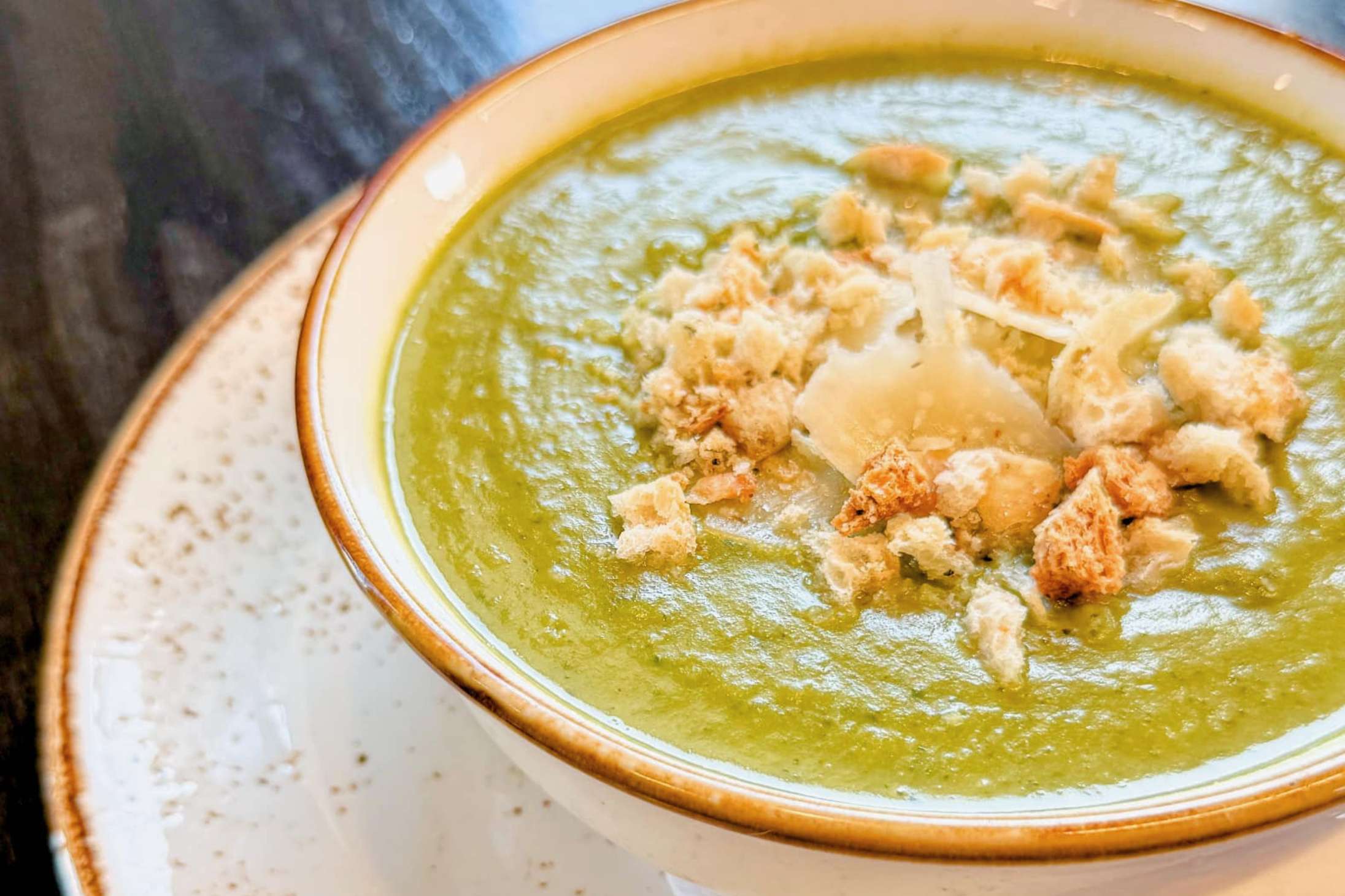 A silky blend of fresh asparagus, leeks, and garlic. Finished with cream and a touch of lemon.
