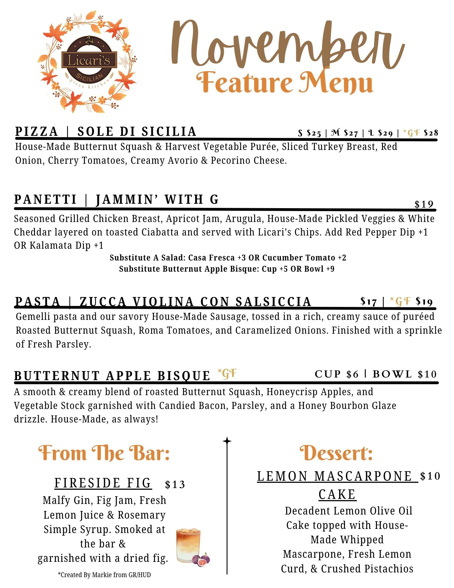 Malfy Gin, Fig Jam, Fresh Lemon Juice & Rosemary Simple Syrup. Smoked at the bar & Garnished with dried fig.